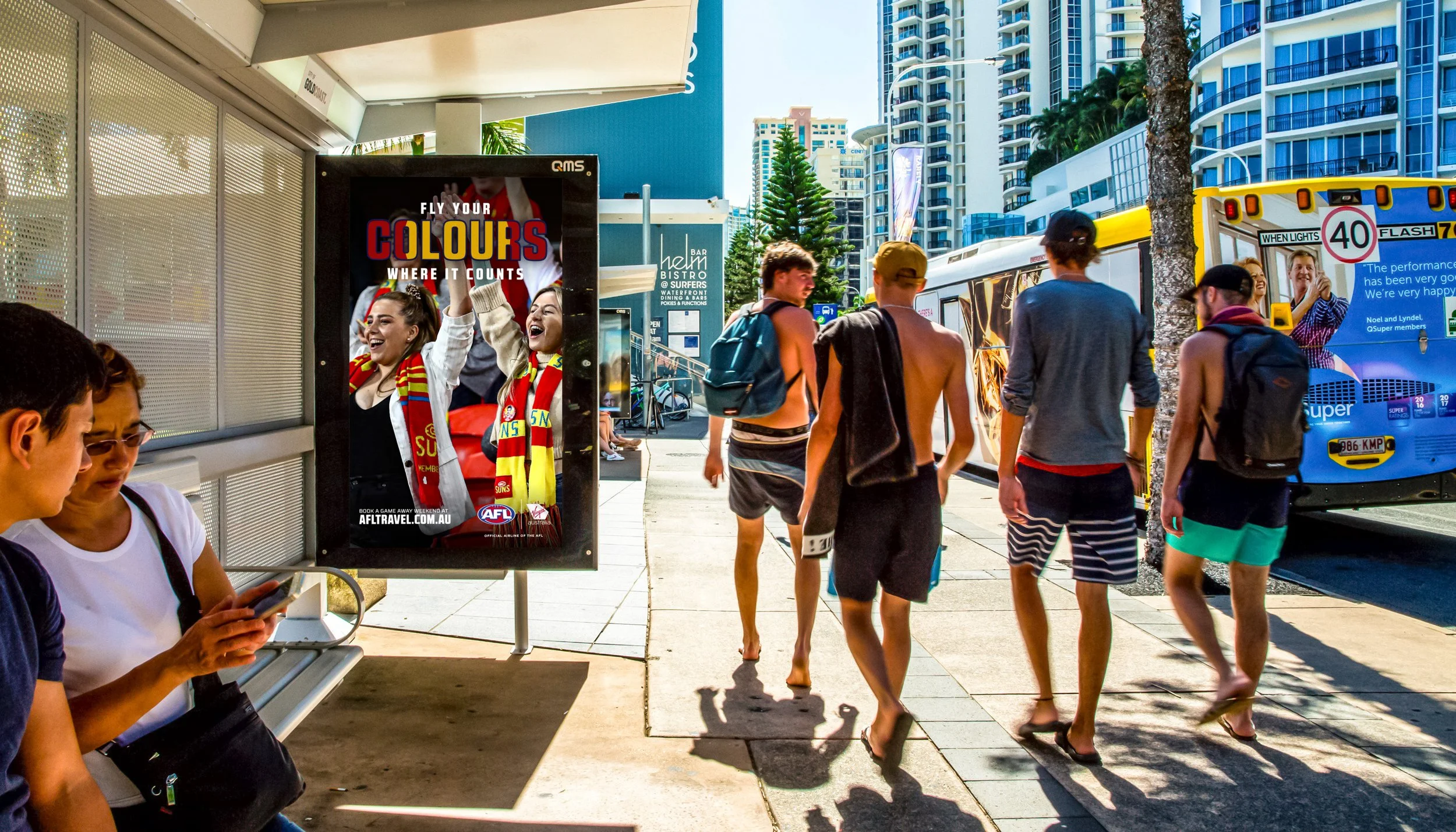 One of the initial concepts for Fly Your Colours was an OOH campaign, along with showing our AFL fans who’ve flown interstate to cheer on their team was to highlight the team colours more with a “COLOURS” badge. It was designed like a sown material to bring in that AFL jersey feel.